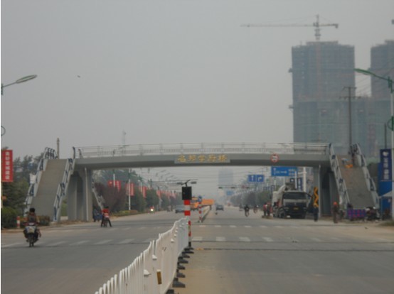 名邦·學(xué)府天橋自2012年7月20日開工,歷時60天。位于學(xué)府項目西側(cè)南華路上、一中東大門北側(cè),長53米,寬4.5米,高6米,是蒙城唯一的天橋。