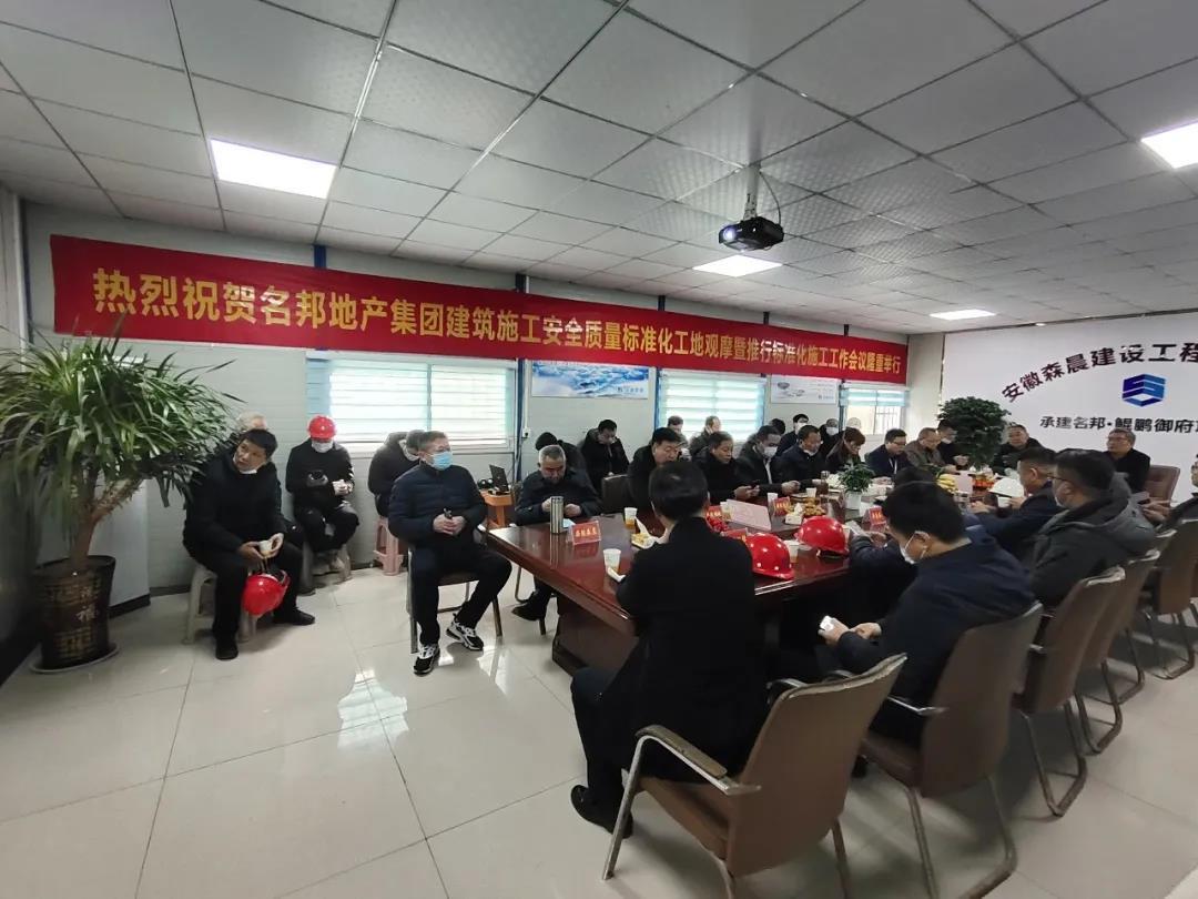 為進一步落實集團各項施工目標,逐步提升各項目質(zhì)量管控意識及標準,加強現(xiàn)場安全文明施工管理水平,推動項目安全文明、質(zhì)量管控向標準化發(fā)展,助力品牌價值提升,經(jīng)名邦地產(chǎn)集團精心挑選項目、周密部署,決定在蒙城名邦·鯤鵬御府和園項目舉辦“名邦地產(chǎn)集團建筑施工安全質(zhì)量標準化施工參觀會”。由名邦地產(chǎn)集團常務(wù)副總經(jīng)理李寬洲、副總經(jīng)理張貴帶隊,組織名邦地產(chǎn)集團旗下各事業(yè)部及項目公司負責(zé)人、各總包單位負責(zé)人及技術(shù)負責(zé)人、各監(jiān)理單位總監(jiān)及總代等工程管理人員參加此次現(xiàn)場會,并組織召開總結(jié)交流會。
