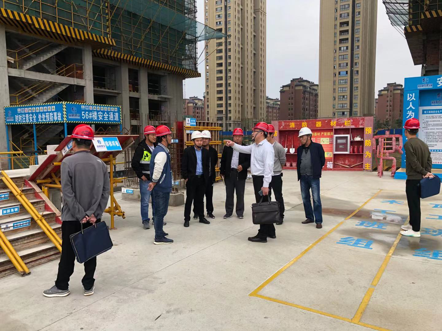 阜陽市建委專家組及臨泉縣住建局領(lǐng)導對名邦·國際花都三期申報“阜陽市質(zhì)量標準化工地”進行現(xiàn)場指導考評