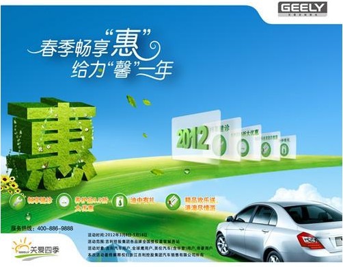 持續(xù)開展的關(guān)愛四季服務(wù)活動是吉利汽車回報(bào)車主支持與厚愛的重要平臺,此次春季服務(wù)活動內(nèi)容豐富,形式多樣,彰顯了吉利汽車以優(yōu)質(zhì)服務(wù)贏得用戶,以專業(yè)服務(wù)打造未來的堅(jiān)定信心。