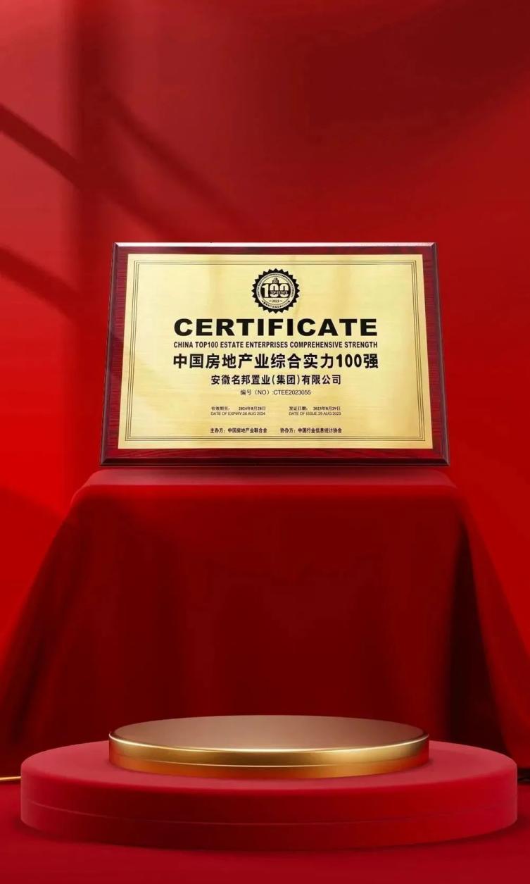 2023年12月15日,名邦地產(chǎn)集團榮獲“2024安徽房地產(chǎn)開發(fā)企業(yè)綜合實力10強”(第8名)、“2024長三角房地產(chǎn)行業(yè)(安徽)服務領(lǐng)先企業(yè)”。