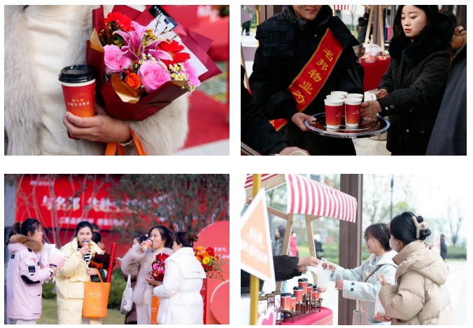 紅毯迎賓,寓意美好生活的開(kāi)啟。繁花點(diǎn)綴、綠意濃郁,一磚一瓦、一樹(shù)一花,都顯得格外溫馨。業(yè)主在步入交房現(xiàn)場(chǎng)之前,暖心攤位已經(jīng)準(zhǔn)備了熱氣騰騰的餃子、湯圓、銀耳粥、奶茶、包子等餐點(diǎn)。讓歸家的氛圍彌漫著的香甜,就像收房業(yè)主的心情一樣甜蜜。